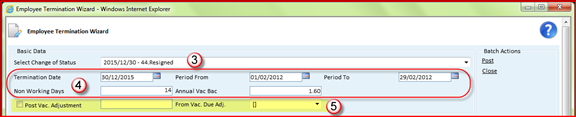 Employee Wizard, and select the relevant (Termination/Resignation) change record;